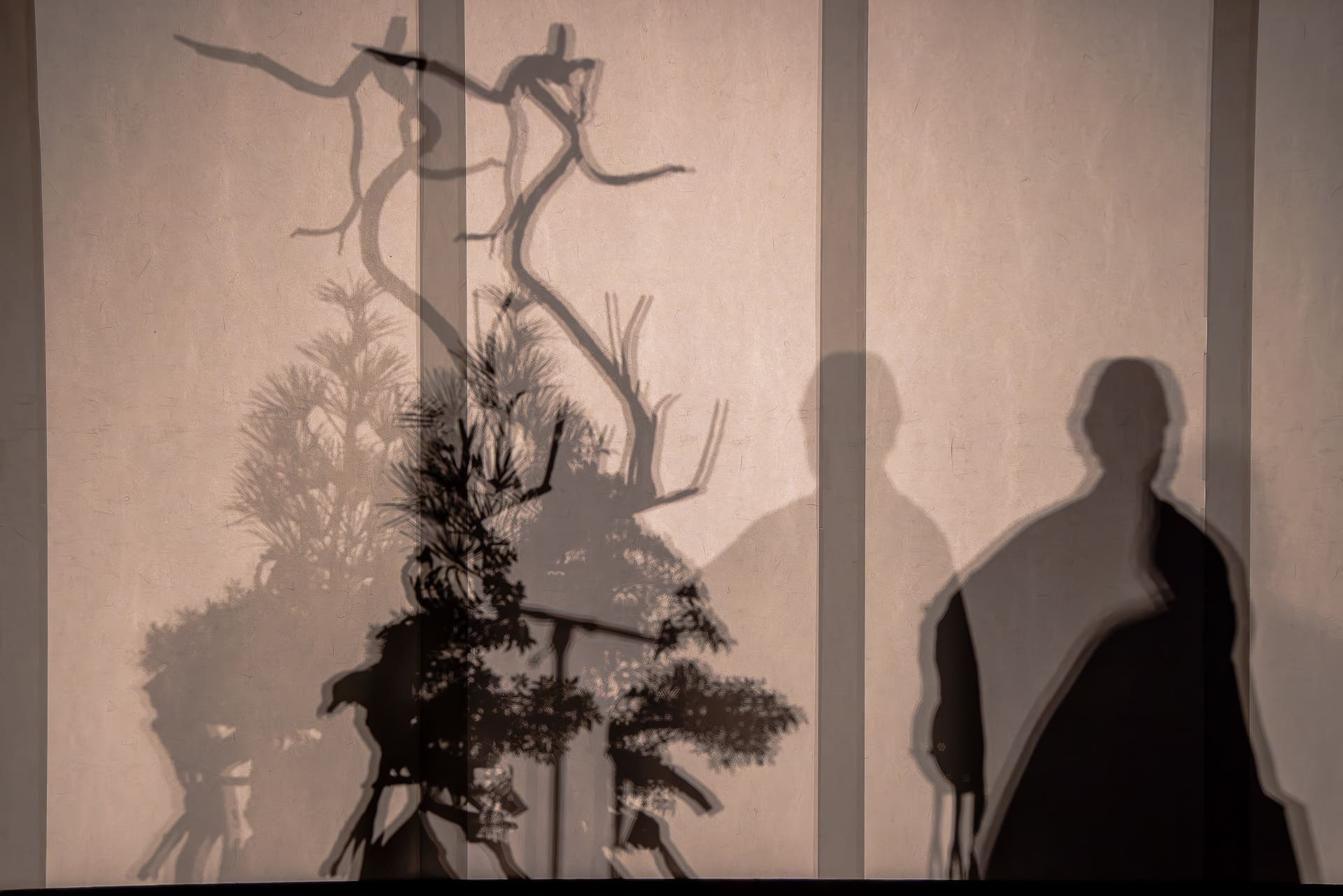 This year featured a crossover performance of Ikebana and Noh. Together with Shonosuke Okura, Ōkura-ryū ōtsuzumi (drum) master, and Kazuma Yamanaka, Noh actor of the Komparu school, we presented Genji Monogatari – Yugao.